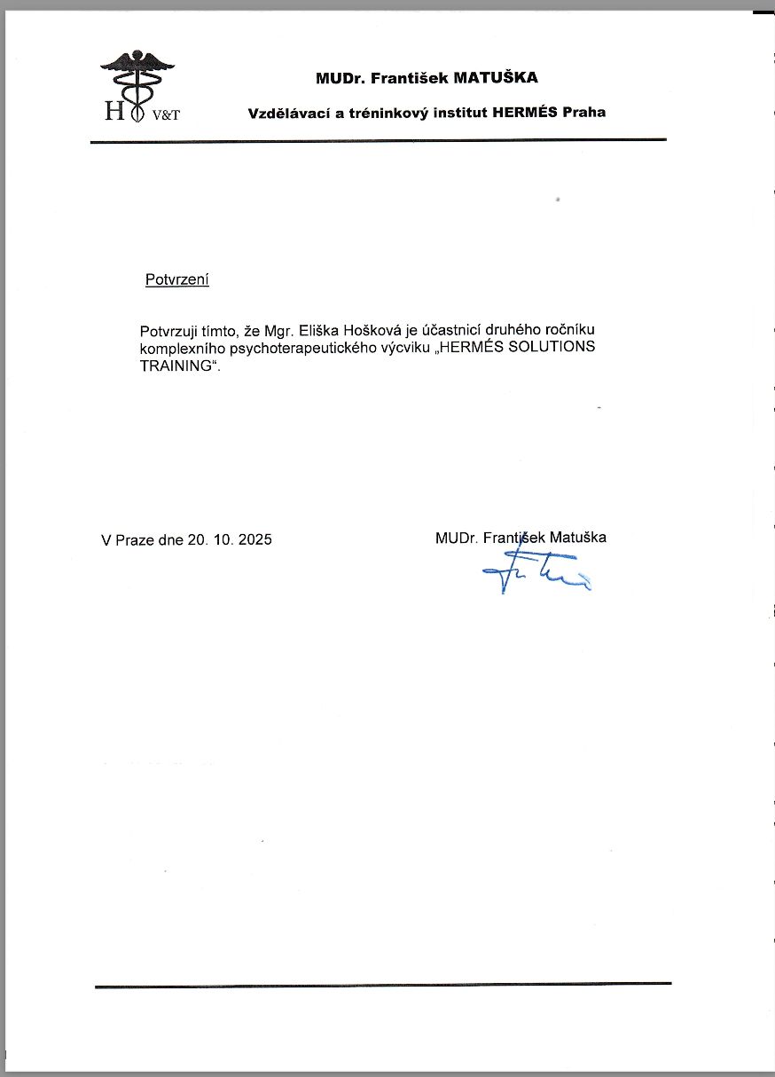 Paní Hošková je velmi empatická a lidská. Od první schůzky jsem se cítila pohodlně a otevřeně. Člověk na správném místě :-)