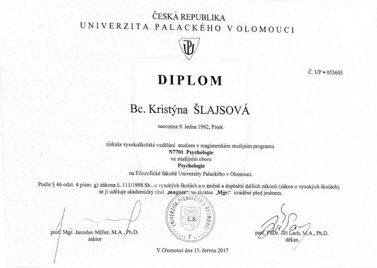 Zatím mohu s potěšením řict, že panÍ Šlajsová má pochopení pro vše, co jí svěříte. Nesoudí, nechá přemýšlet, navede ke správným myšlenkám.