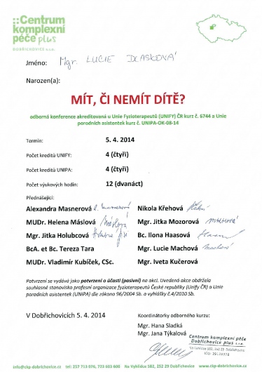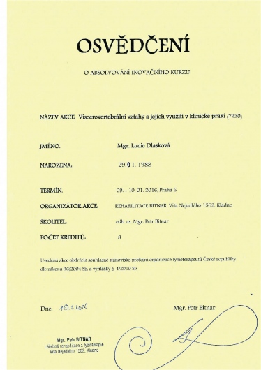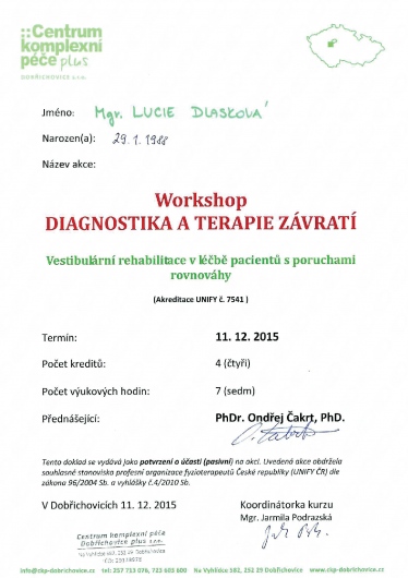 Moc děkuji za pomoc a cenné rady s mými bolestmi beder. Paní fyzioterapeutka je také velmi lidská a příjemná.