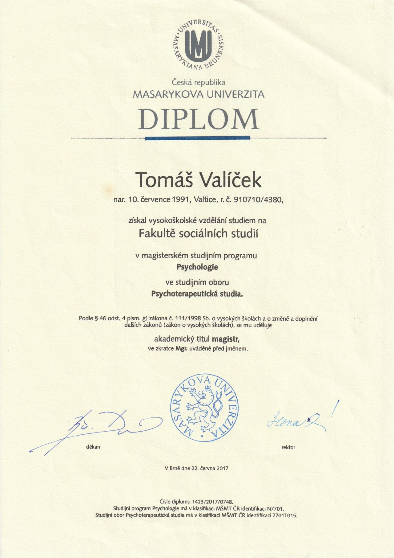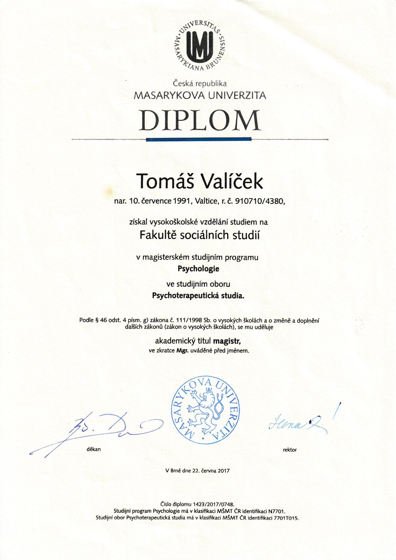 Jsem psycholog s magisterským titulem z Masarykovy univerzity v Brně. Absolvoval jsem integrativní psychoterapeutický výcvik a působím v soukromé praxi mimo zdravotnický systém.